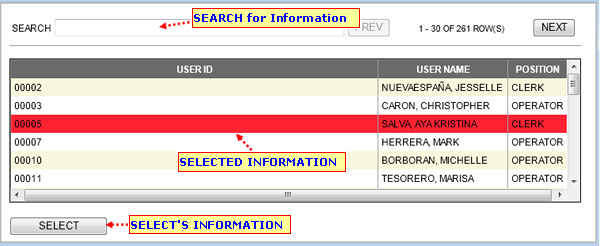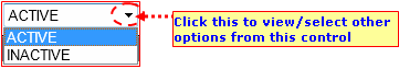SEARCH: You may use searching to to view specific informations from the list. or ou may select a status type either ACTIVE or INACTIVE As shown below: ![]() Default is "ACTIVE" |